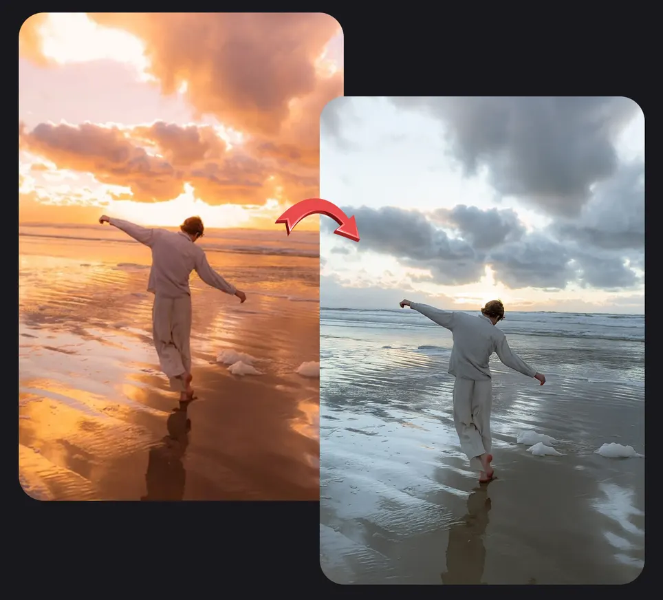 Remove filter from photo online free and bring back the authentic appearance of your images. Whether you need to eliminate Instagram filters, remove beauty effects, clear vintage filters, or restore over-processed photos, our filter remover helps you get back the natural, genuine look of your original photos. Perfect for photographers, content creators, social media users, and anyone who wants authentic, unfiltered images for personal or professional use.